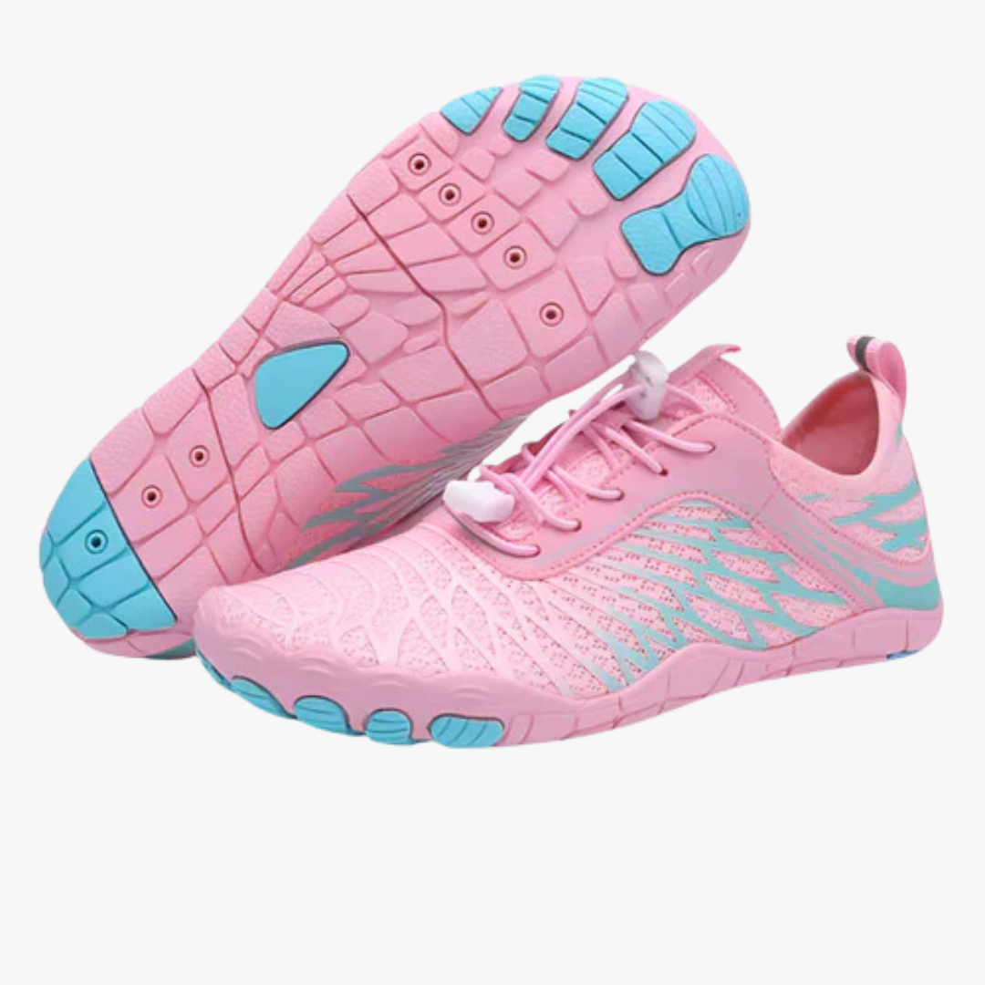 La suela antideslizante te da seguridad en superficies húmedas, y el material de secado rápido evita que cargues con zapatos pesados y empapados durante todo el día.